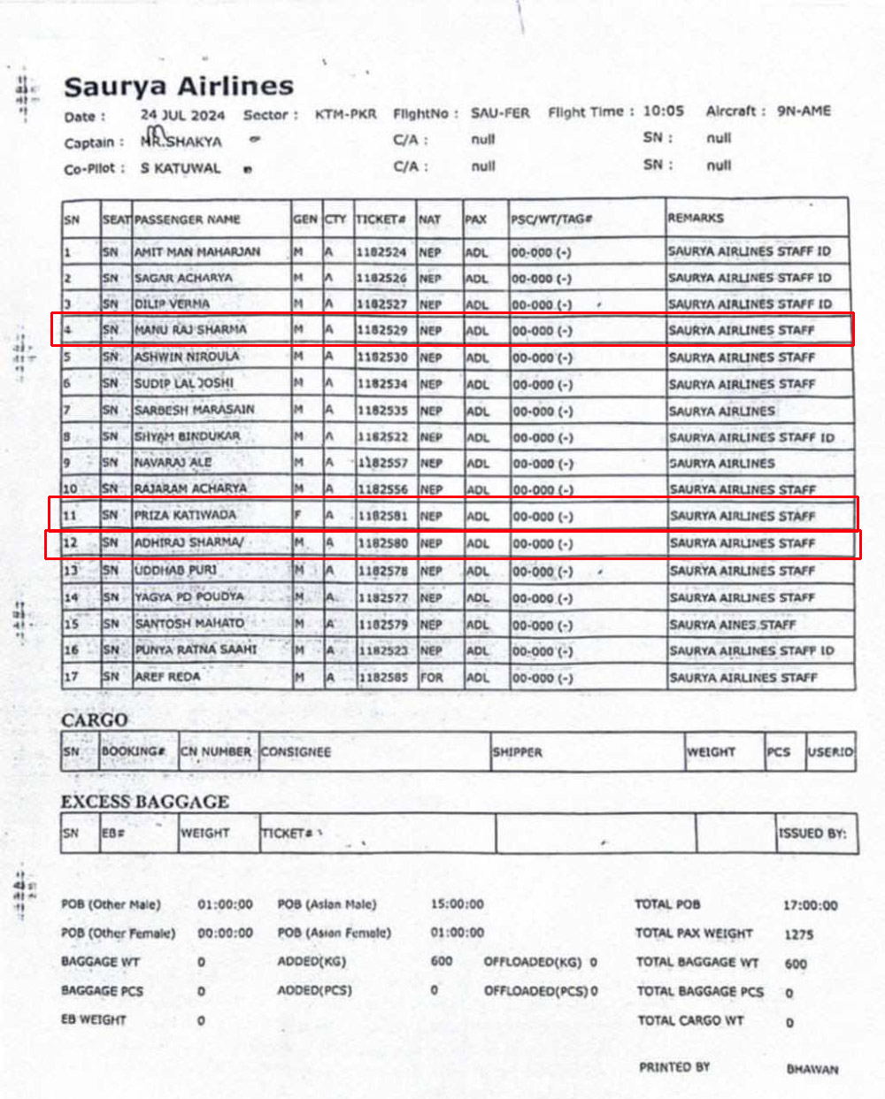प्रिजा र अधिराज विमानका कर्मचारी होईनन्। उनीहरु कसरी यो दुर्घटनामा परे भन्ने विषयमा अनुशन्धान हुने जनाईएको छ। तर, एयरलाईन्सले भने मृत सवैलाई सौर्यको कर्मचारी उल्लेख गरेको छ।