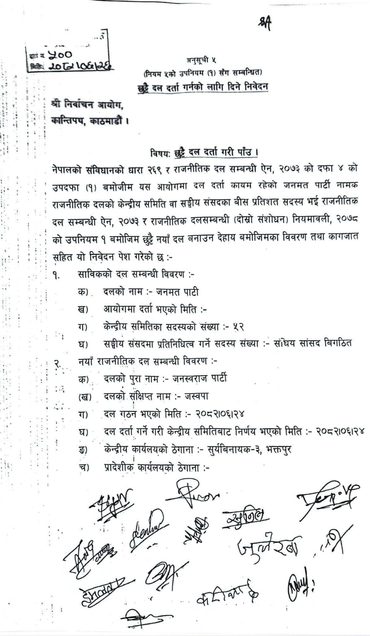 जनमत अध्यक्ष डा. राउतले भने जनस्वराज पार्टी दर्ता भएको विषयमै असहमति जनाएका छन्। सामाजिक सञ्जालमा उनले लेखेका छन्– ‘वाह रे बिकेका निर्वाचन आयोग! एक दिनमै केही चेकजाँचै नगरी माथिको आदेशमा दल फोड्ने! जम्मा १४ जनाको हस्ताक्षरले दल दर्ता हुन्छ कि न्यूनतम २१ चाहिन्छ? त्यसमा पनि निष्कासित भइसकेकाको गणना हुन्छ? दसौं लाख दिएर साइन गराएका यी सबैको भविष्य बर्बाद पार्ने भयो — कम से कम राम्ररी दर्ता गरिदिनु पथ्र्यो, अब मुद्दा परे त बीचमै झुन्डिएर बस्छ।’
