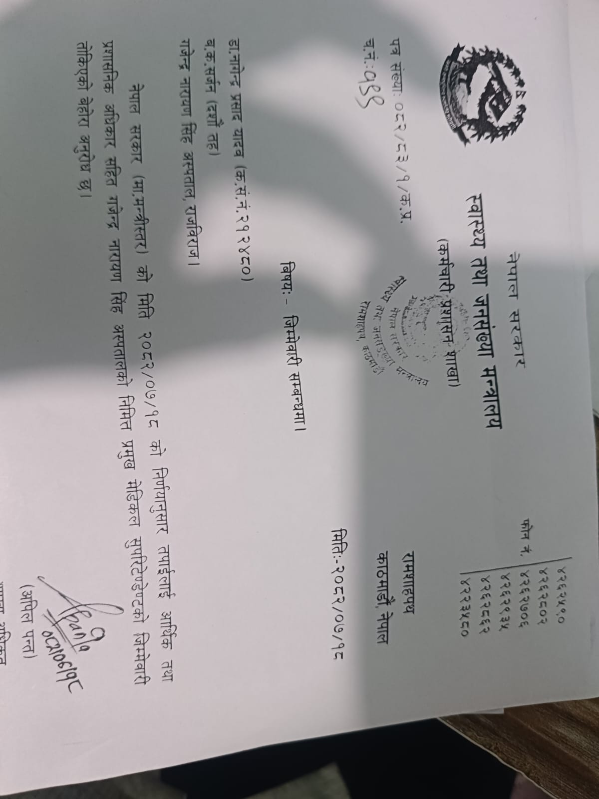 राजविराज — सप्तरीको राजविराज स्थित गजेन्द्रनारायण सिंह अस्पताल फेरि एकपटक राजनीतिक चलखेल र प्रशासनिक हस्तक्षेपको केन्द्र बनेको छ। स्वास्थ्य मन्त्रालयले ११औं तहका मेडिकल सुपरिटेन्डेन्ट (मेसु) डा. प्रकाशप्रसाद साहलाई हटाएर १०औं तहका डा. नागेन्द्रप्रसाद यादवलाई निम्मित मेसु तोकेपछि यो विषय सतहमा आएको हो।