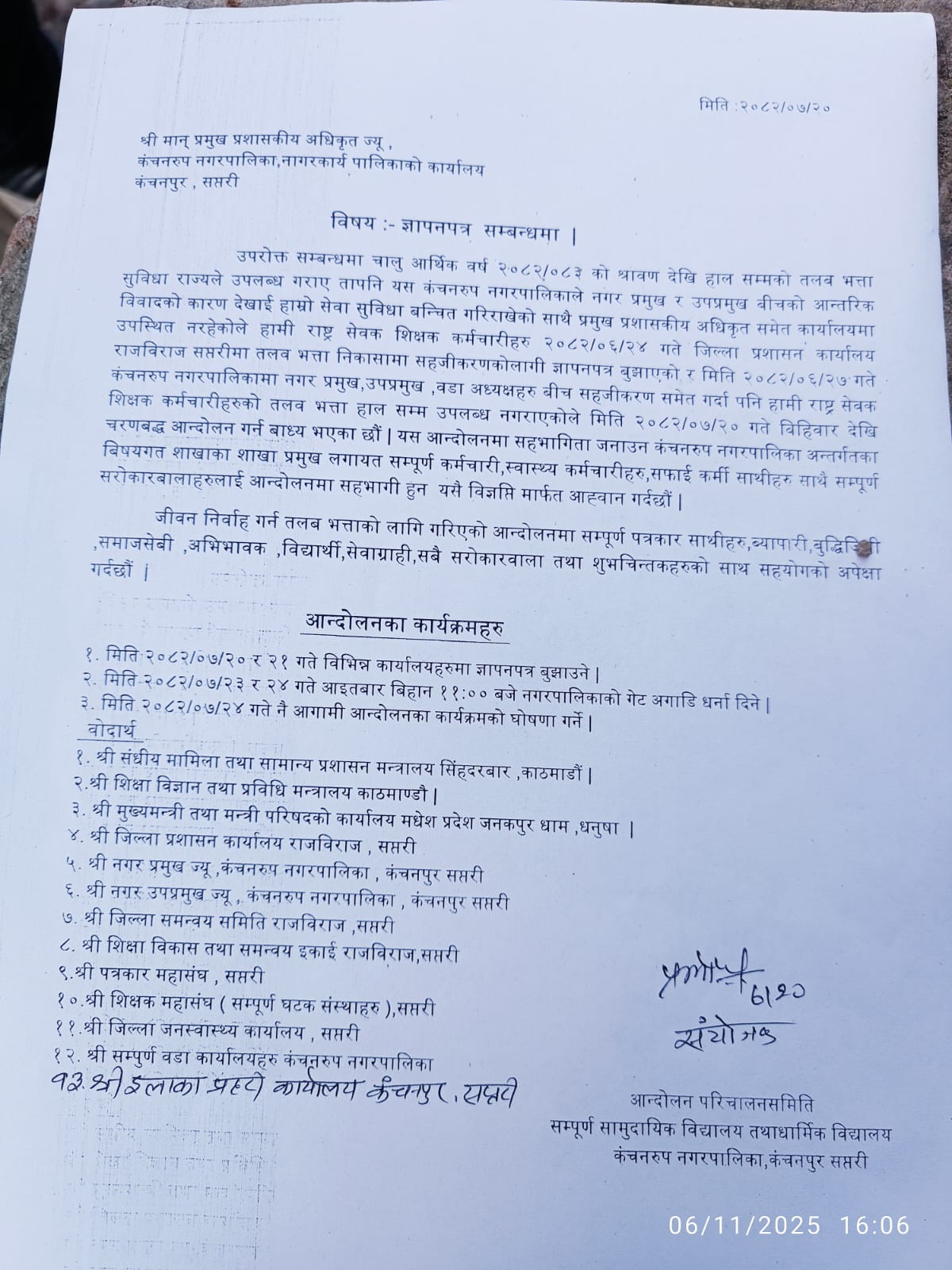 कंचनरुपमा राजनीतिक टकरावले प्रशासनिक संकटः तलब–भत्ता रोकिँदा शिक्षक–कर्मचारी सडकमा
