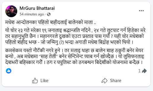 तर यही घटनाले राजनीतिक बहस र आलोचना पनि तीव्र बनाएको छ। सामाजिक सञ्जालमा तीखा टिप्पणीहरू आएका छन्, जहाँ बालेनमाथि ‘सहिदको सम्मानमा पनि विभेद गरेको’ आरोप लागेको छ। केही आलोचकले जेनजी आन्दोलनका क्रममा ज्यान गुमाएका ७६ जनाको मृत्युमा बालेनले स्पष्ट संवेदना नदेखाएको भन्दै अहिले मधेश आन्दोलनका शहीदलाई मात्र स्मरण गर्नु राजनीतिक लाभका लागि गरिएको ‘प्रतीकात्मक नौटंकी’ भएको दाबी गरेका छन्।