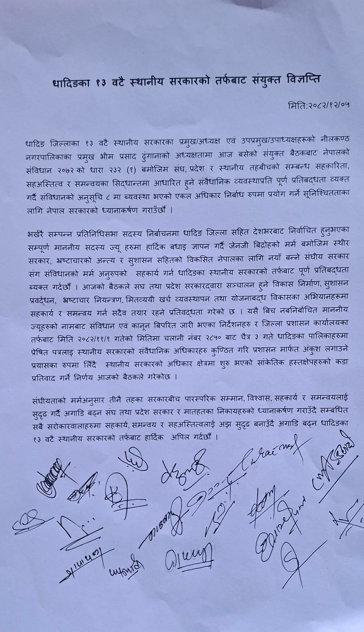 अर्कोतर्फ, स्थानीय तहहरूको प्रतिवाद पनि सामान्य छैन। १३ वटै पालिका एकै स्वरमा उत्रिनु आफैंमा ठूलो राजनीतिक सन्देश हो। उनीहरुले यो मुद्दालाई प्रशासनिक विवाद भन्दा पनि ‘अधिकारको लडाइँ’को रूपमा हेरेका छन्।