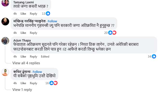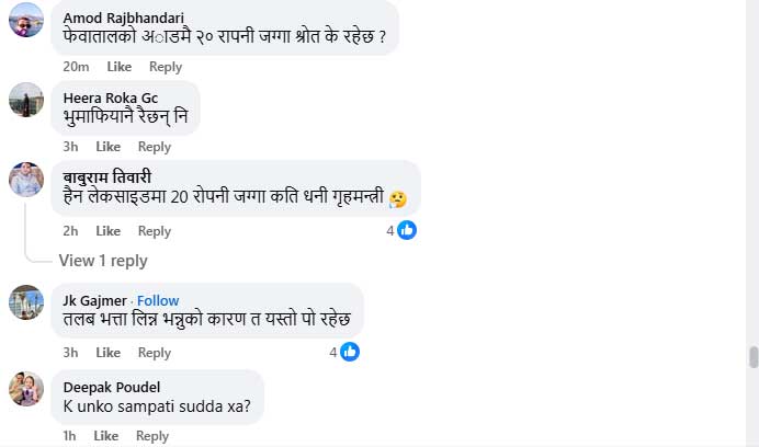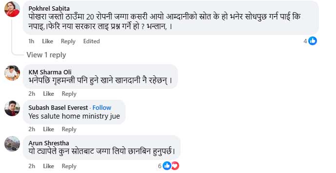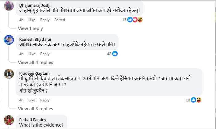 गृहमन्त्री गुरुङले उक्त जग्गा कहिले र कसरी खरिद गरे भन्ने विषय अझै रहस्यकै घेरामा छ। उनको आयस्रोत, सम्पत्ति आर्जनको प्रक्रिया र स्वामित्वको वैधतामाथि कुनै स्पष्ट विवरण सार्वजनिक नभएकाले सामाजिक सञ्जालमा चर्को प्रश्न उठेको छ। ‘फेवाताल किनारको २० रोपनी जग्गा कसरी आयो?’, ‘आयस्रोत के हो?’, ‘सरकारी वा सार्वजनिक जग्गा त हडपिएको होइन?’ जस्ता प्रश्नहरूले अहिले जनमत तताएको छ।